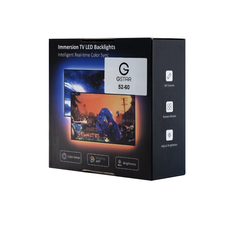 • درێژایی نەھێشتن 5.25 مەترە، گونجاوە بۆ زۆربەی قەبارەکانی تەلەفزیۆن. • ھەماهەنگکردنی ڕەنگەکان لەگەڵ ناوەڕۆکی شاشەکە بۆ ئەزموونی تەماشاکردنی فراوان. • ڕووناکیی RGBIC نمایشەی کۆمەڵەیەک ڕەنگی فراوان دەکات. • دانانی ئاسان لە پشت تەلەفزیۆن بۆ بەژداری لە کاریگەری ڕووناکییەکان.