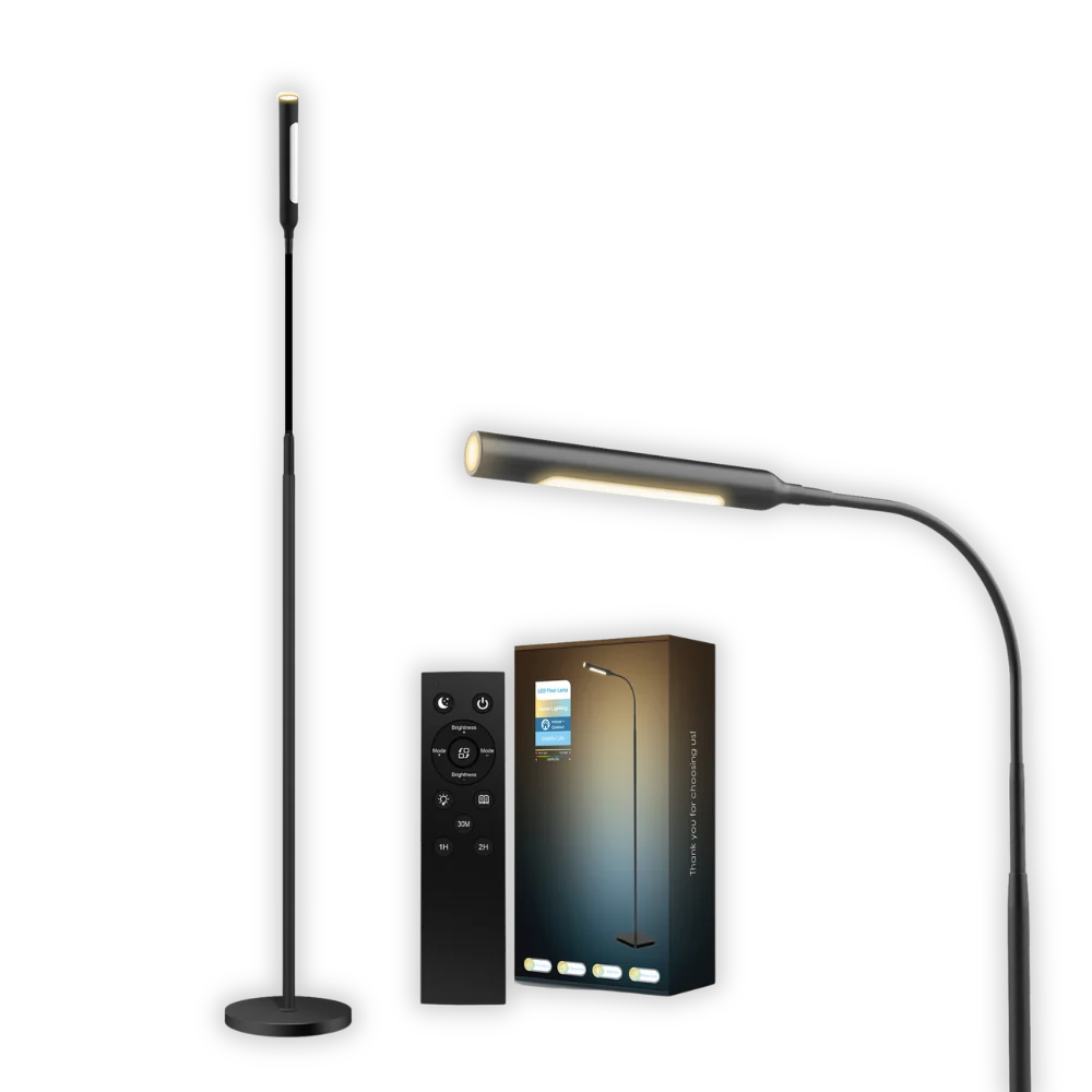 • ارتفاع 1.7 متر يوفر إضاءة مناسبة لمساحات متنوعة. • تغيير لون الإضاءة (CCT) بين الأبيض الدافئ والبارد. • جهاز تحكم عن بعد للتحكم السهل والمريح. • تصميم أسود أنيق يتناسب مع أغلب الديكورات.